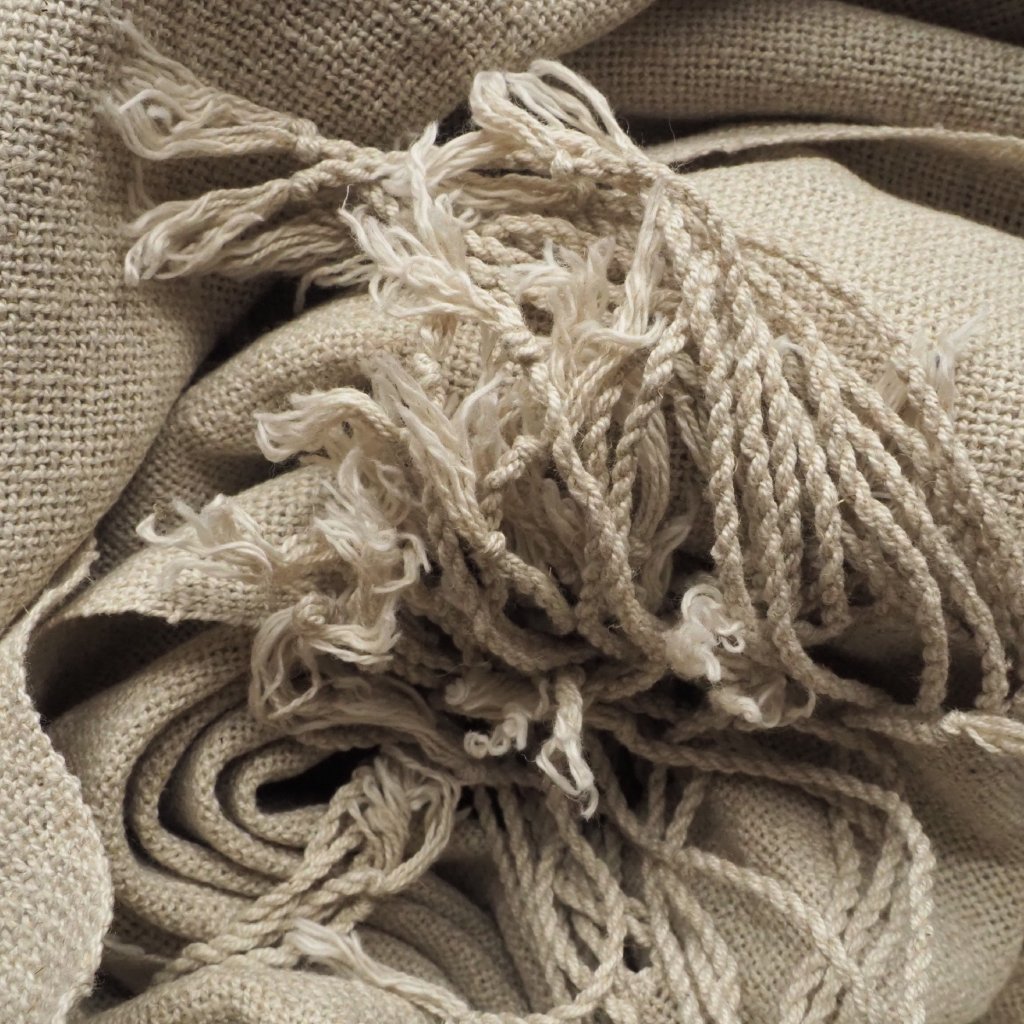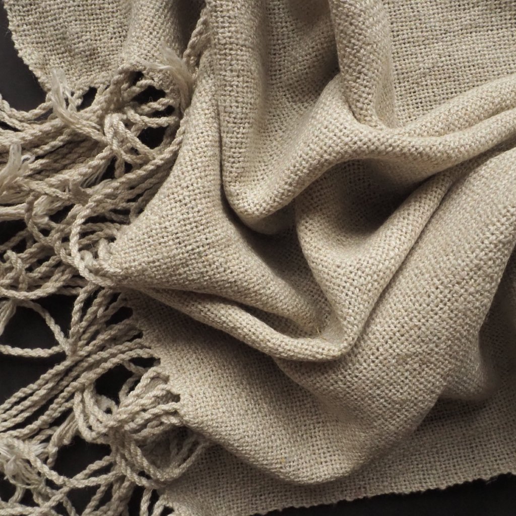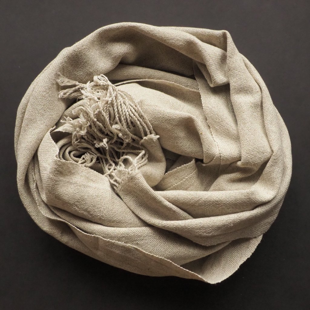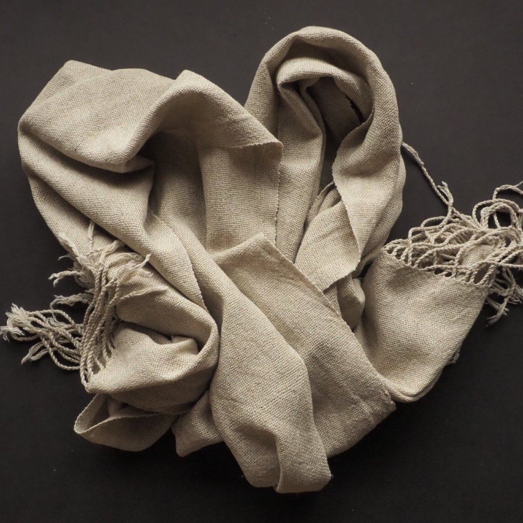 Od začátku svého tkalcovského života tkám s přízemi primárně určenými i pro jiná řemesla s nitěmi, ale nevyhýbám se ani typickým tkalcovským přízím. A tohle je jedna z nich. Směs bavlny (70 %) a lnu (30 %), která si s každého z materiálů bere to nejlepší a nejvhodnější pro ruční tkaní. Tady ji najdete v tenkém provedení, takže ideálně pro nošení v teplých částech roku, a nebělené a neobarvené šedavě béžové. Tuhle přízi se ještě chystám v létě barvit, takže pokud minimalismus není váš šálek kávy, zůstaňte na příjmu.