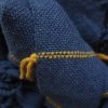 Šála z čistého jemného kašmíru z přebytků italských přádelen a pletáren. Hlavní příze je tenčí džínově modrá, v útku je doplněná v pravidelných intervalech se vracející silnější hořčičně žlutou kašmírovou přízí, použitou vždy na dvě řady, a na boku šály zpevněnou uzlíkem. Šála patří k těm tenčím v mém repertoáru, ale kašmír bude i v této tloušťce krasně hřejivý. Šálu tedy využijete celoročně, v zimě zabalíte blízko ke krku, v létě přehodíte kolem ramen.