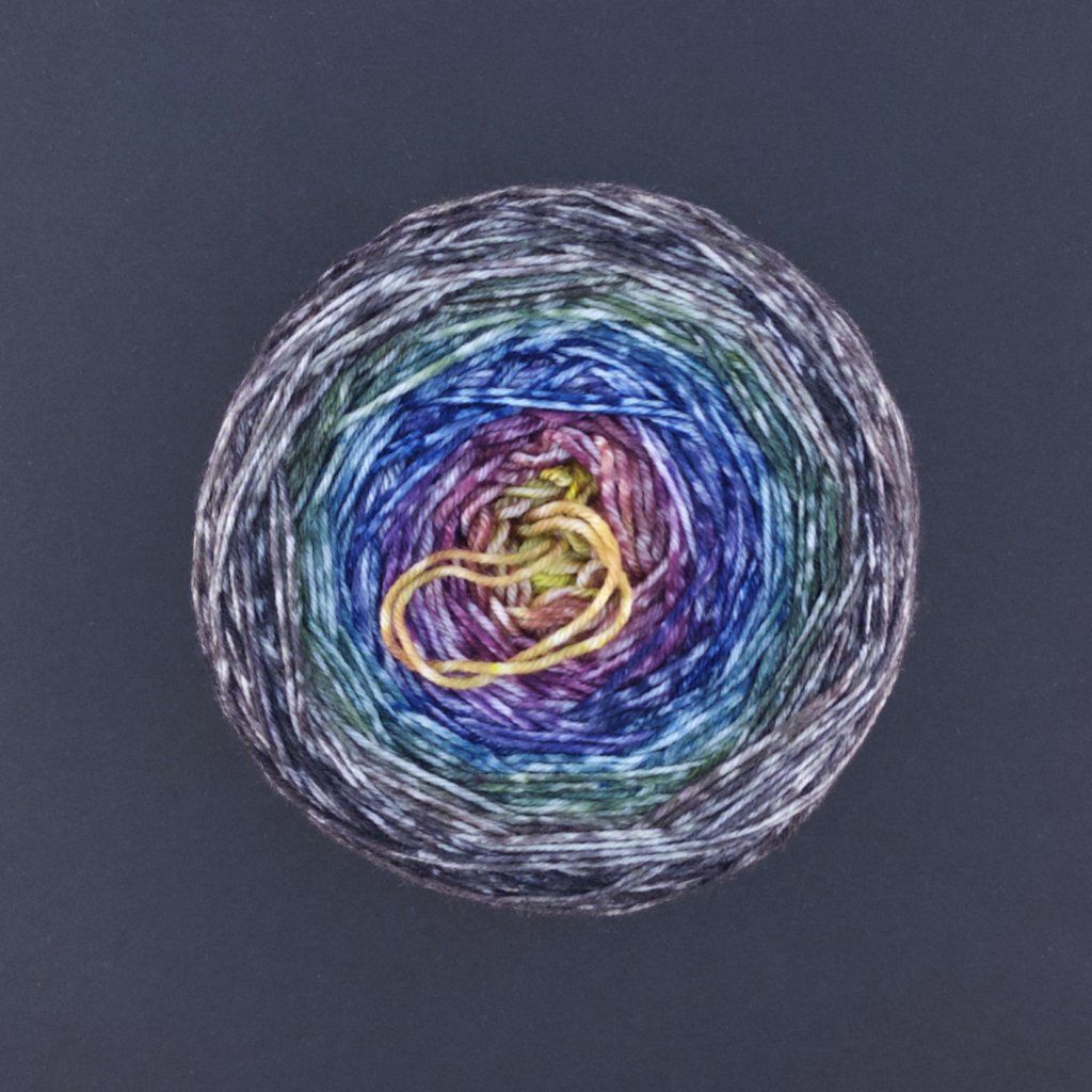 Klasická jemná ponožková příze pro pohodlné obutí nebo trvanlivé oblečení a doplňky obecně. Barvila jsem ji ve dvojitém úpletu (i klubko tvoří dvojitá příze, každá z nití má 50 g a 212 m), takže můžete uplést dvě identické ponožky. Barevný přechod tu jde od žluté přes odstíny červených a modrých až k zeleným, hnědé a šedé.