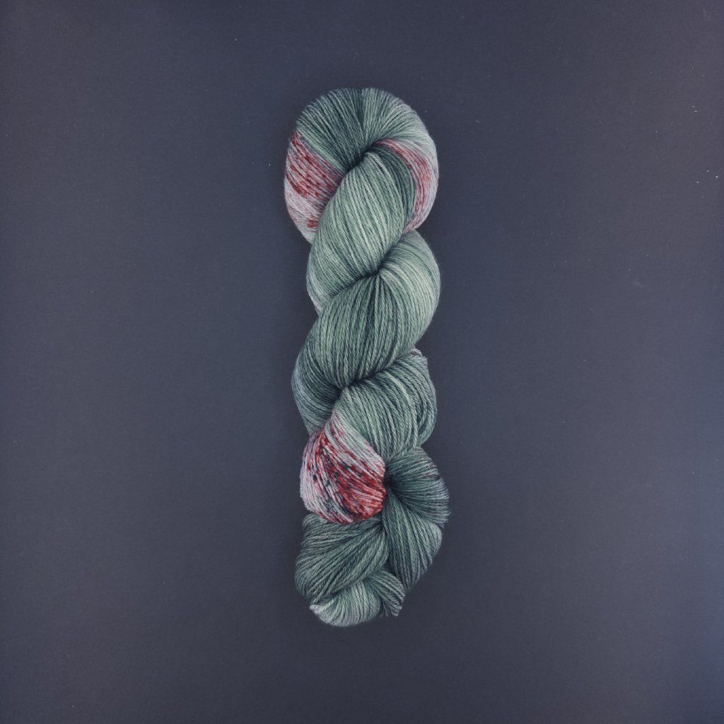 Merino 500 superwash, lesní zelená s červenými prskanci