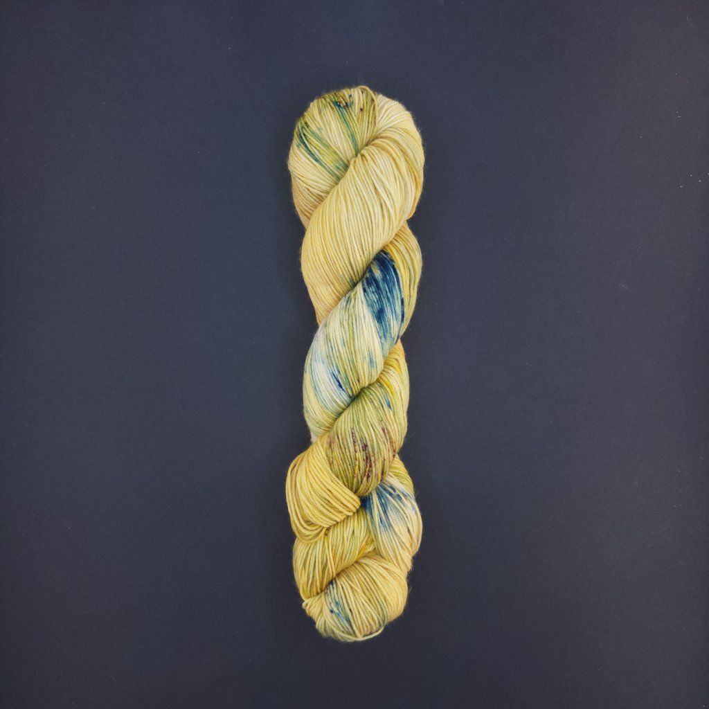 Naducaná ponožkovka merino, světle žlutá s prskanci