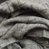Pléd z divokého hedvábí ve světle šedé přízi, kterou jsem před tkaním ještě trochu ozvláštnila - dobarvila tak, aby v osnově a útku nabízela jemné křížení tmavších šedých až černých úryvků. Tím jsem ještě podtrhla rustikální strukturu tohoto materiálu. Hedvábí v zimě hřeje a v létě chladí, a tento kousek tak můžete využít celoročně.