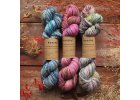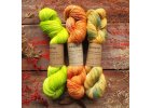 Příze, které se jen tak neprošlapou a nezničí, buď speciálně předené, pocházející ze specifických ovčích plemen, nebo zpevněné funkčními syntetickými vlákny. Převážně zde najdete příze v síle fingering (návin na 100g od 365 do 425 m), u kterých na jeden pár ponožek obvykle stačí 1 přadeno. Takové ponožky jsou i pro každodenní nošení, bez problémů se vejdou do bot. Barvím ale také příze v síle DK (kolem 200m na 100g), kde od středních a větších dospělých velikostí potřebujete na pár ponožek 2 přadena. Vzniknou pak silnější ponožky, spíše do postele nebo bosé chození doma.