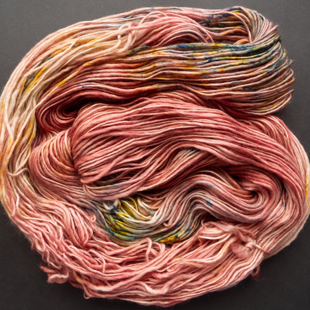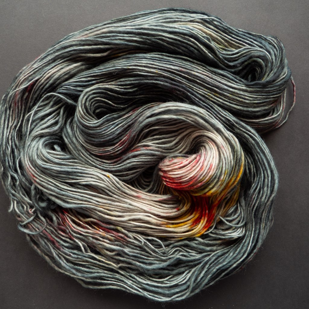 Jemné jihoamerické merino, šetrně získané z lokálního rouna a sepředené za férových podmínek, a posléze mnou obarvené netoxickými barvami, které při praní nepouštějí, a minimálně blednou. Příze je jednonitková a jemně předená, což znamená, že je choulostivější - nedoporučuji ji tedy na mechanicky namáhané doplňky jako jsou čepice nebo rukavice. Je ale ideální na šátky a šály, je jemná i pro citlivou pokožku.