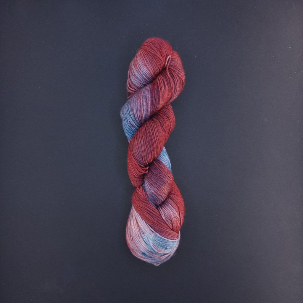 Vícenitka merino fingering, červená s prskanci do modra